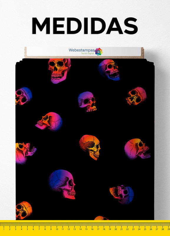 Tecido Helanca Estampa Digital Caveirinhas Neon 1,55m de Largura