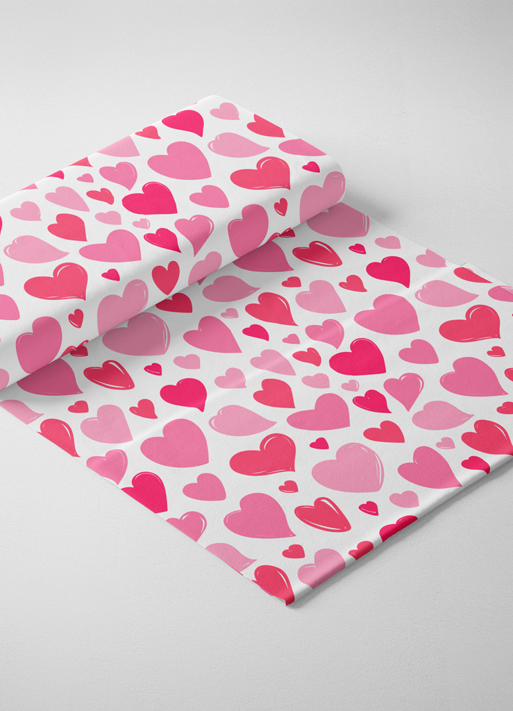 Tecido Helanca Estampa Digital Coração Médio Pink e Rosa 1,55m de Largura