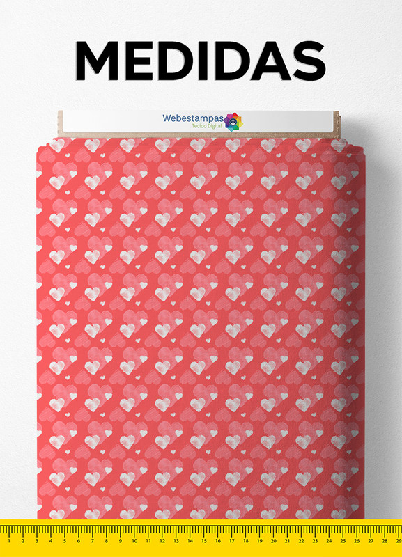 Tecido Helanca Estampa Digital Coração Vermelho e Pink 1,55m de Largura