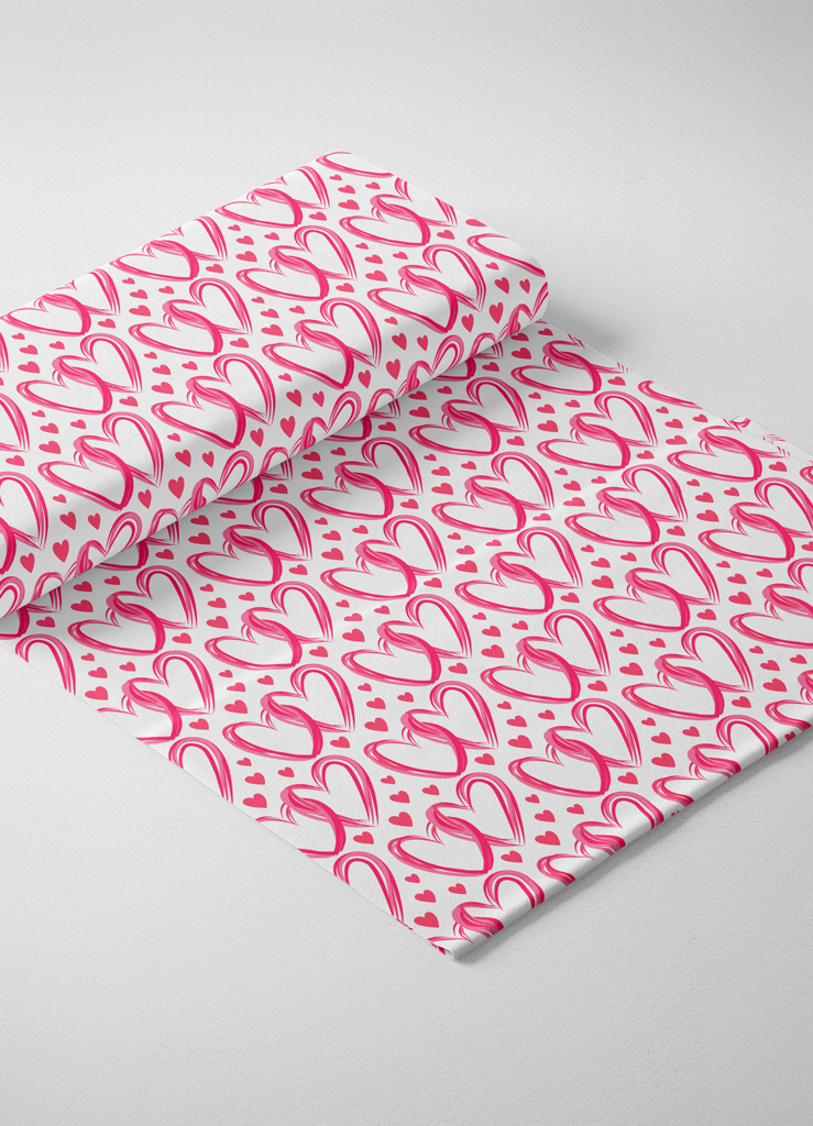 Tecido Helanca Estampa Digital Corações Entrelaçados Pink 1,55m de Largura
