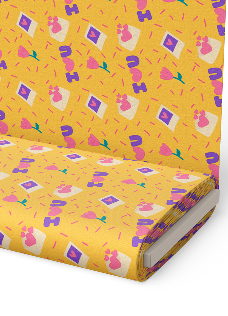 Tecido Helanca Estampa Digital Corações Fundo Amarelo 1,55m de Largura