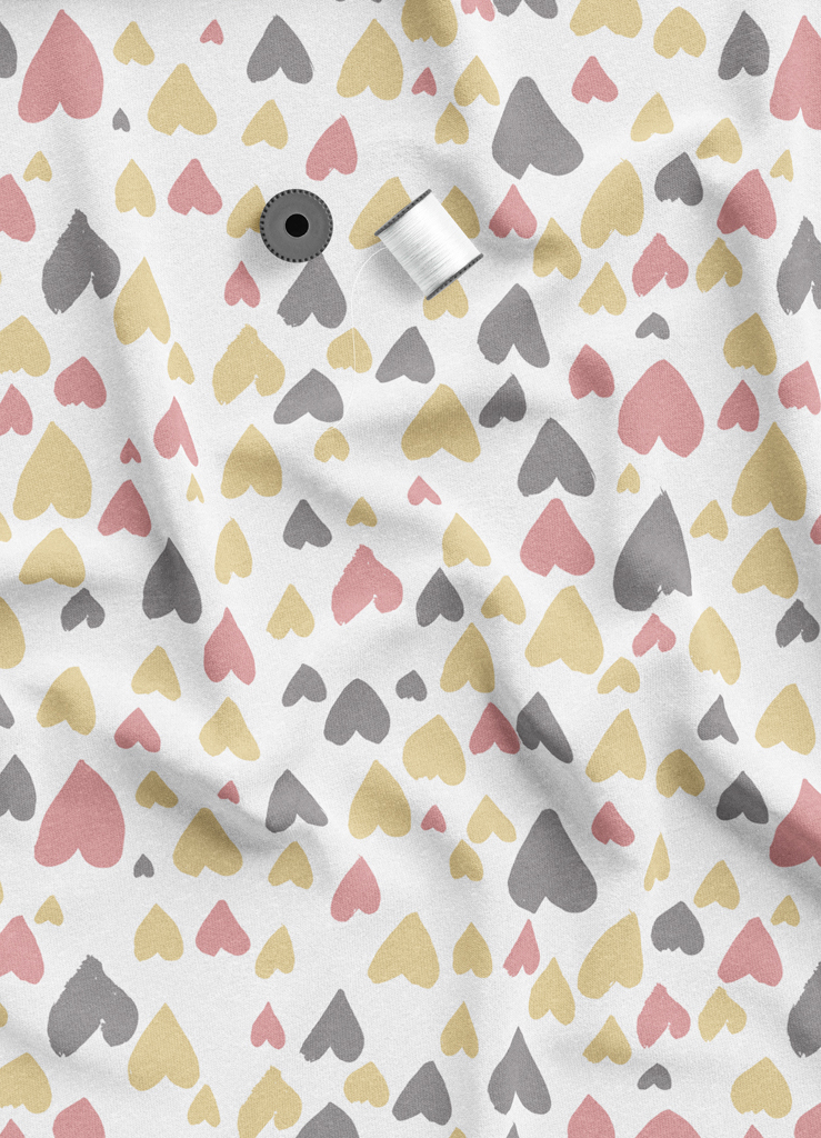 Tecido Helanca Estampa Digital Corações Rosa, Cinza e Amarelo 1,55m de Largura
