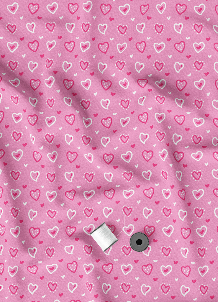 Tecido Helanca Estampa Digital Corações Rosa e Branco 1,55m de Largura