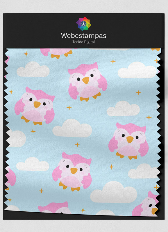 Tecido Helanca Estampa Digital Corujinhas Rosas 1,55m de Largura
