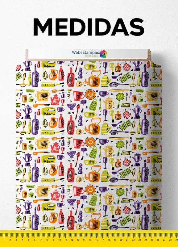 Tecido Helanca Estampa Digital Cozinha Colorida 1,55m de Largura