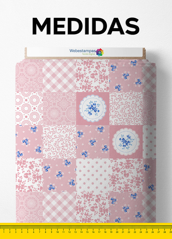 Tecido Helanca Estampa Digital Flores Mini Rosa e Azul 1,55m de Largura