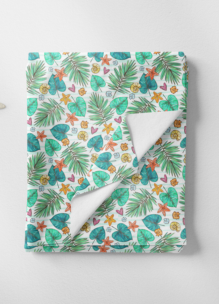 Tecido Helanca Estampa Digital Folhas de Praia 1,55m de Largura