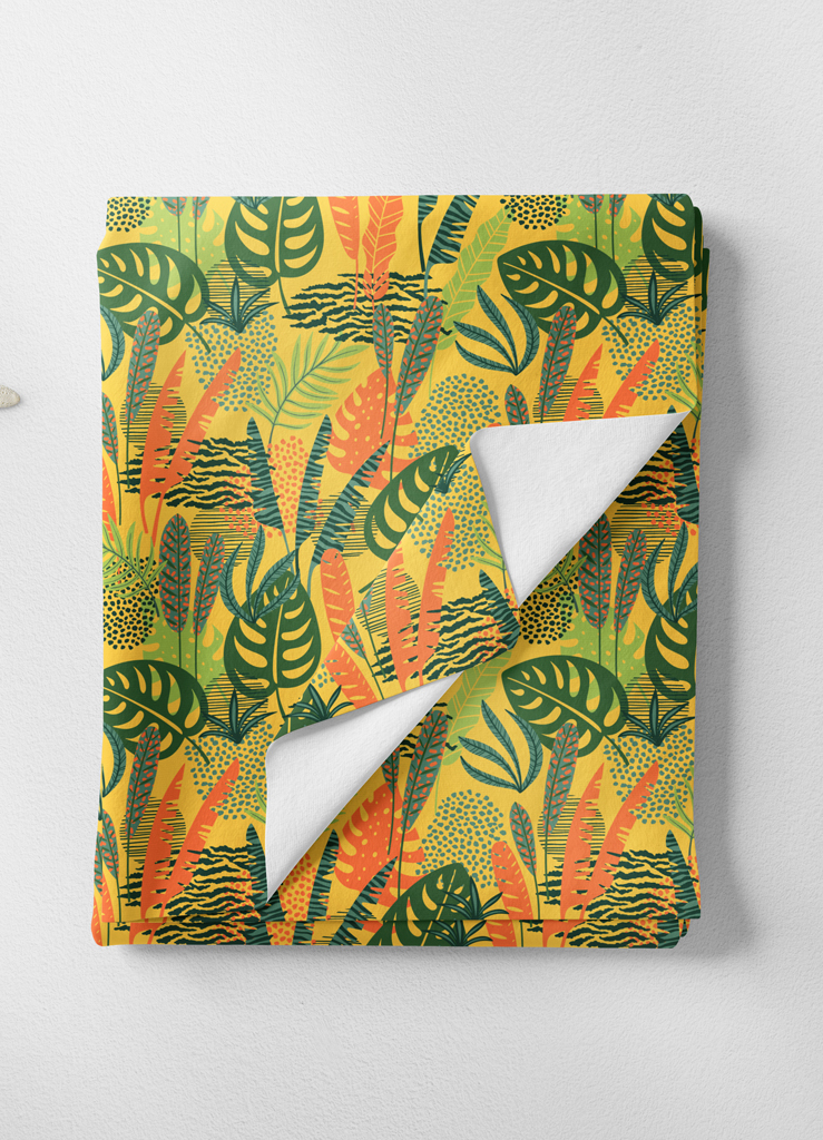 Tecido Helanca Estampa Digital Folhas Verde e Laranja 1,55m de Largura