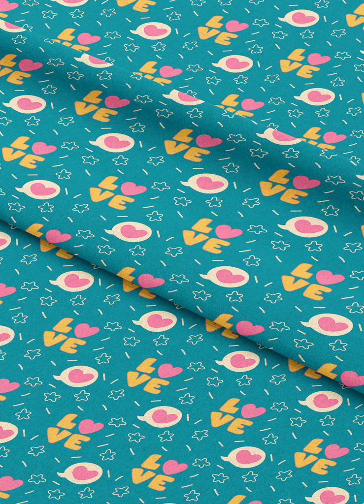 Tecido Helanca Estampa Digital Love Fundo Azul 1,55m de Largura