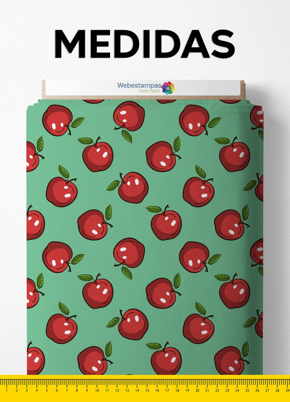 Tecido Helanca Estampa Digital Maçãs Fundo Verde 1,55 de Largura