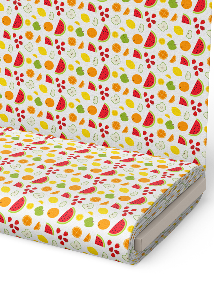 Tecido Helanca Estampa Digital Mini Frutas Coloridas 1,55m de Largura