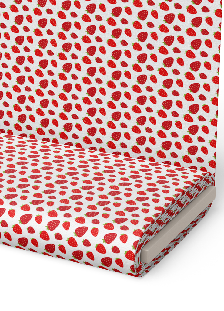 Tecido Helanca Estampa Digital Mini Morango Fundo Branco 1,55m de Largura