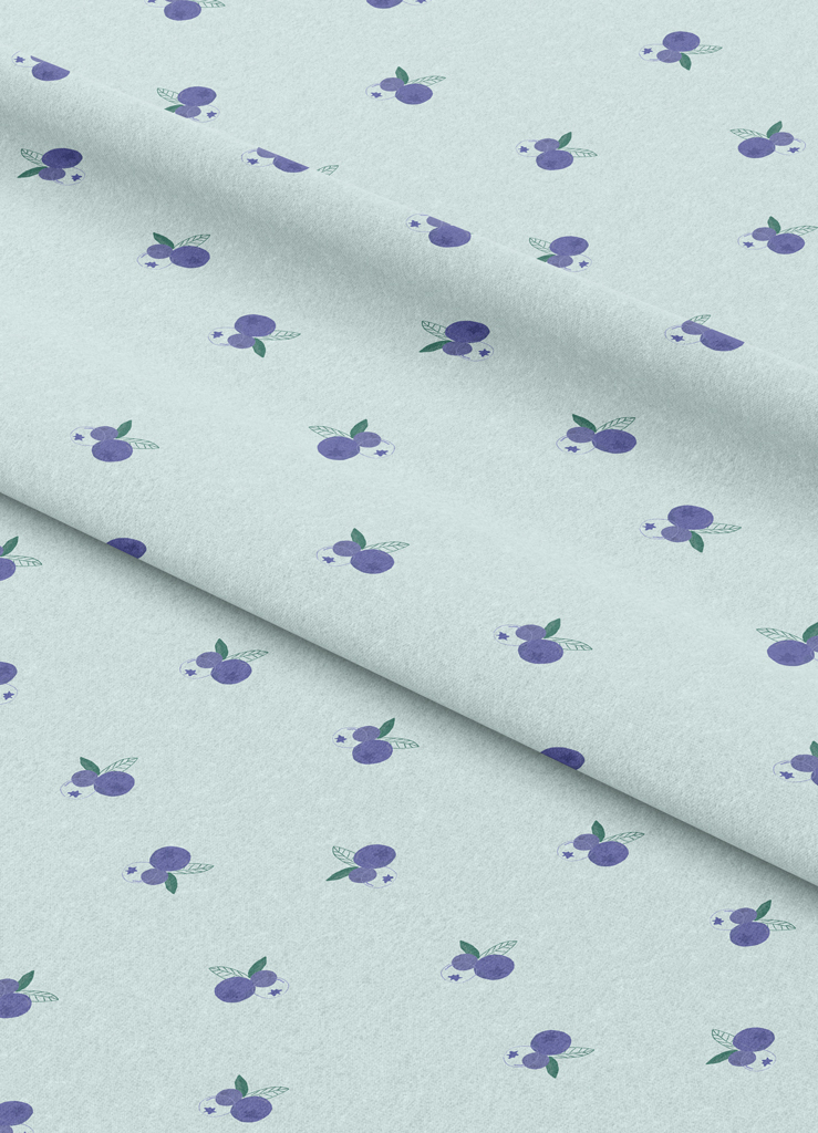 Tecido Helanca Estampa Digital Mirtilos Fundo Azul 1,55m de Largura