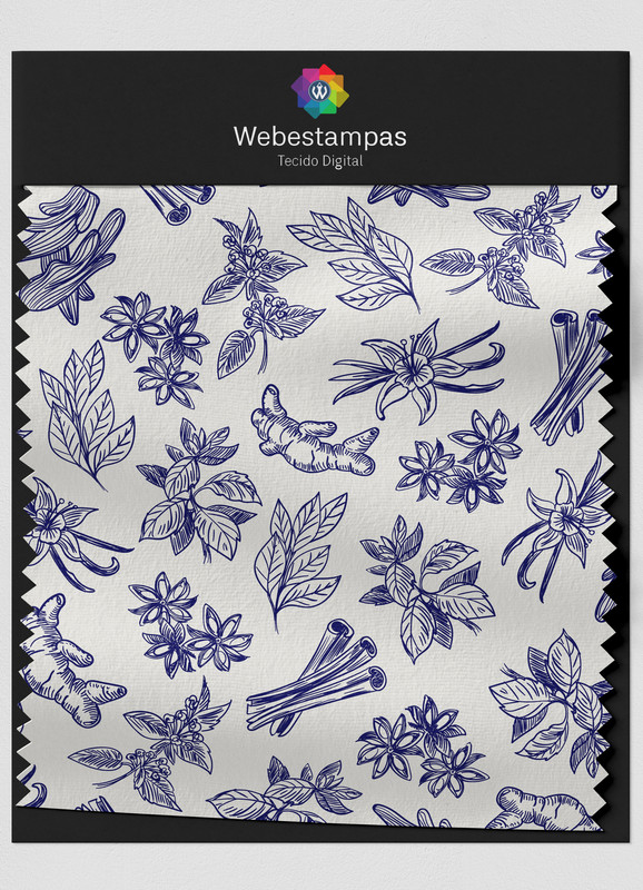 Tecido Helanca Estampa Digital Plantas Azuis Fundo Branco 1,55m de Largura