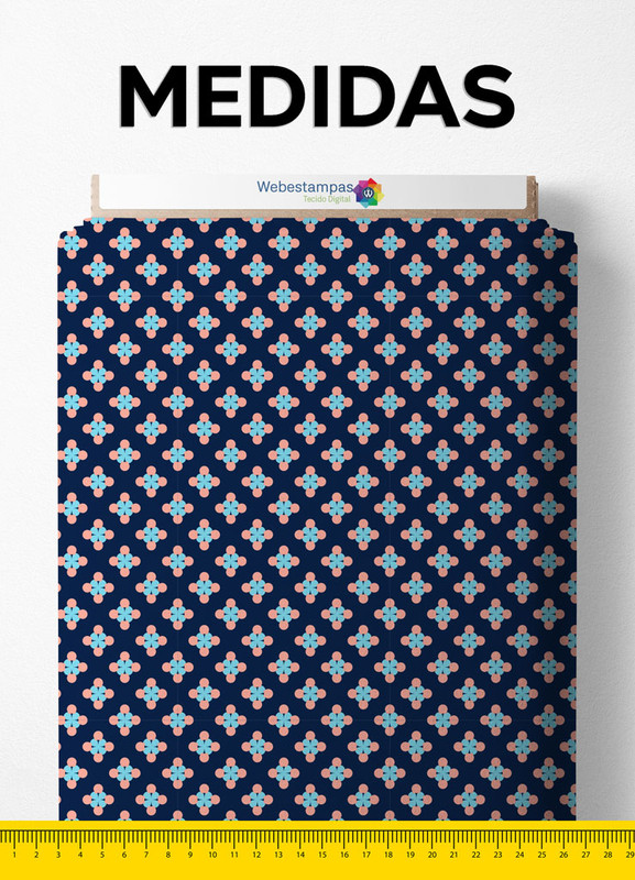 Tecido Helanca Estampa Digital Poa Geometrico Fundo Marinho 1,55m de Largura