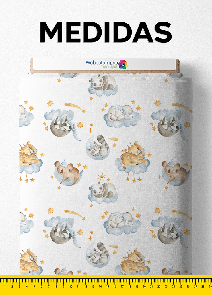Tecido Helanca Estampa Digital Soneca dos Bichinhos Azul 1,55m de Largura