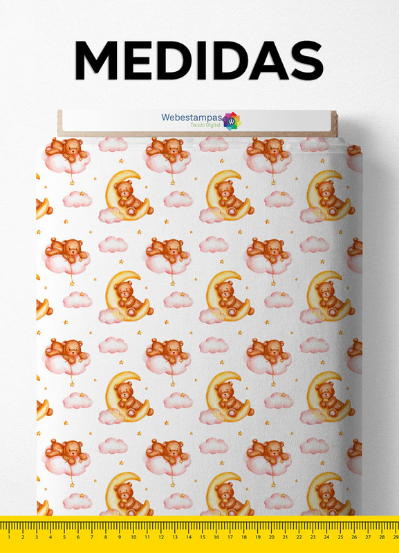 Tecido Helanca Estampa Digital Ursinho Dorminhoco 1,55m de Largura