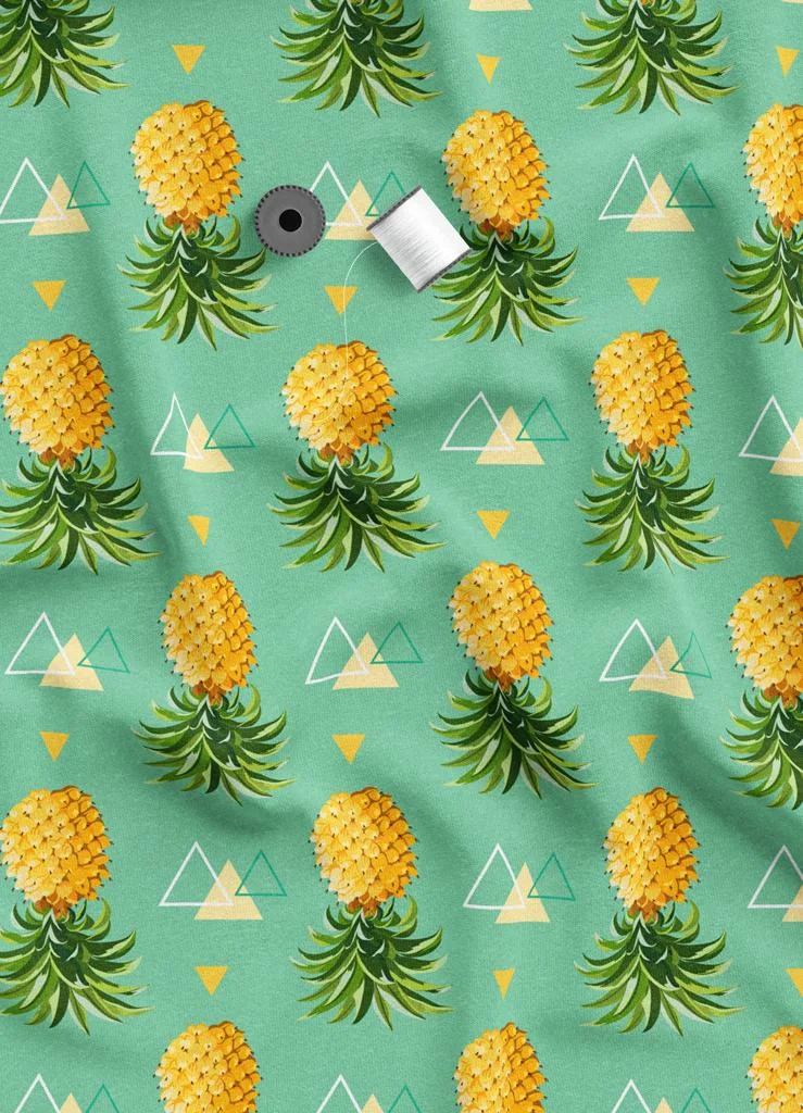 Tecido Microfibra Estampa Digital Abacaxi Fundo Verde 1,55 de Largura