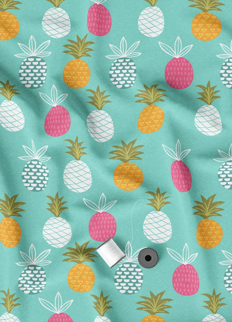 Tecido Microfibra Estampa Digital Abacaxis Coloridos Fundo Verde 1,55m de Largura