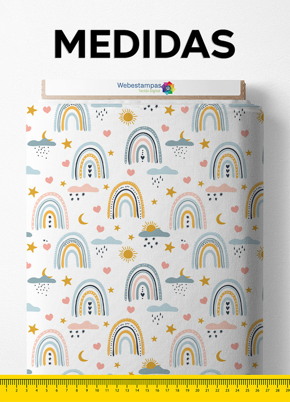 Tecido Microfibra Estampa Digital Arco-íris, Corações e Estrelas 1,55m de Largura