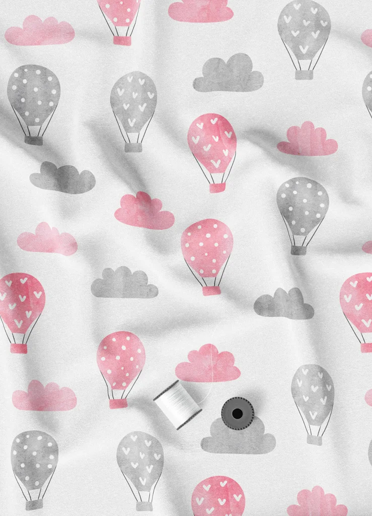 Tecido Microfibra Estampa Digital Balões Vermelho e Cinza 1,55m de Largura