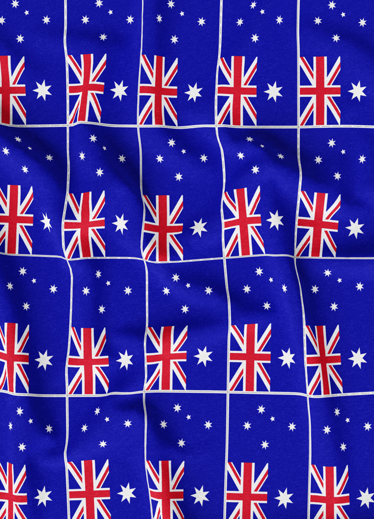Tecido Microfibra Estampa Digital Bandeirinhas da Austrália 1,55m de Largura