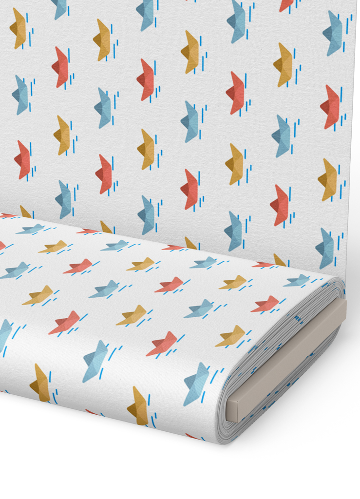 Tecido Microfibra Estampa Digital Barco De Papel Colorido 1,55m de Largura