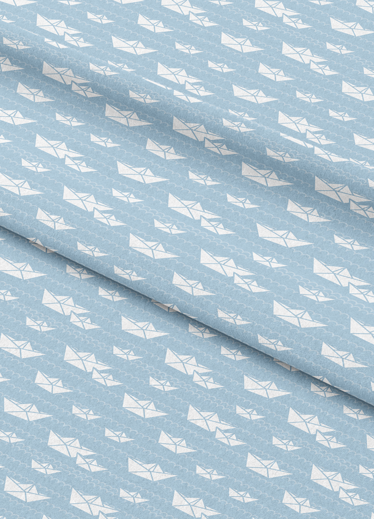 Tecido Microfibra Estampa Digital Barco de Papel Fundo Azul 1,55m de Largura