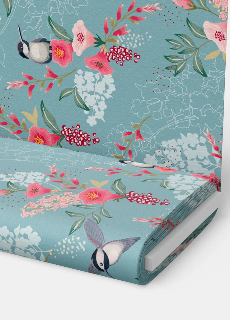 Tecido Microfibra Estampa Digital Beija Flor Fundo Azul 1,55m de Largura