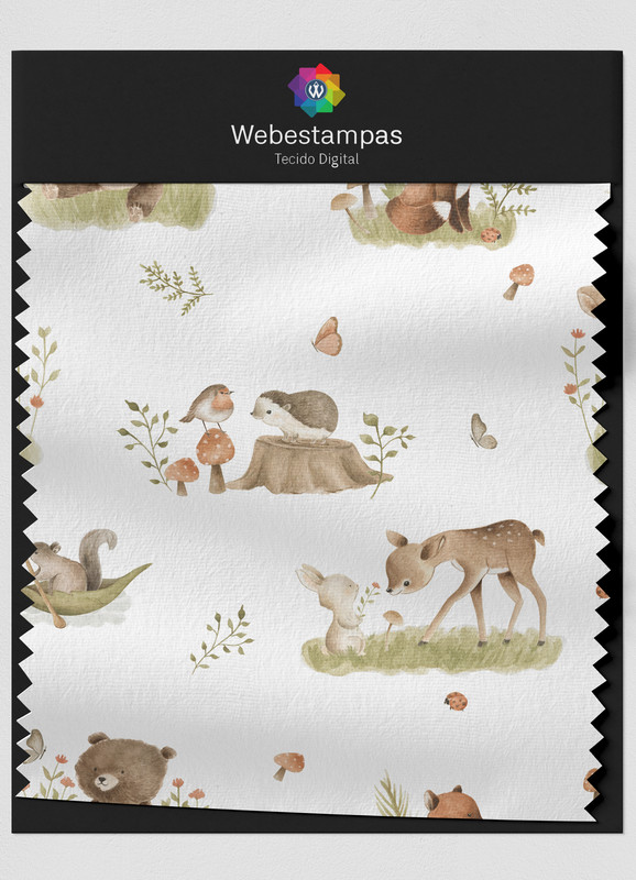 Tecido Microfibra Estampa Digital Bichinhos Fofos do Bosque 1,55m de Largura
