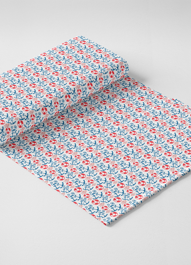 Tecido Microfibra Estampa Digital Boias e Ancoras Vermelho e Azul 1,55m de Largura