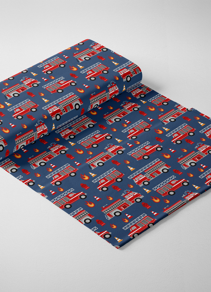 Tecido Microfibra Estampa Digital Bombeiros Fundo Azul 1,55m de Largura