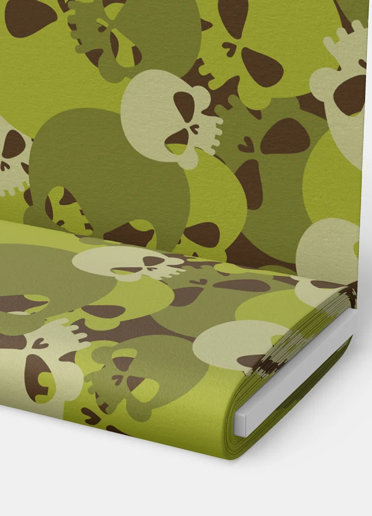 Tecido Microfibra Estampa Digital Caveira Camuflada Verde e Branco 1,55m de Largura