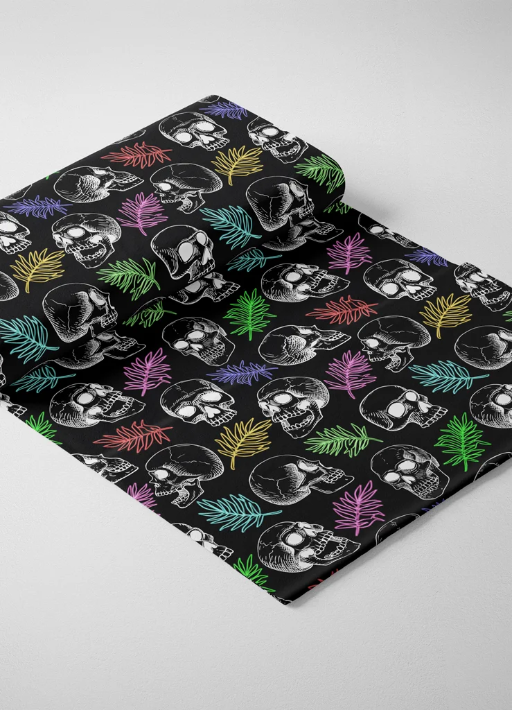 Tecido Microfibra Estampa Digital Caveiras e Ramos Coloridos 1,55m de Largura
