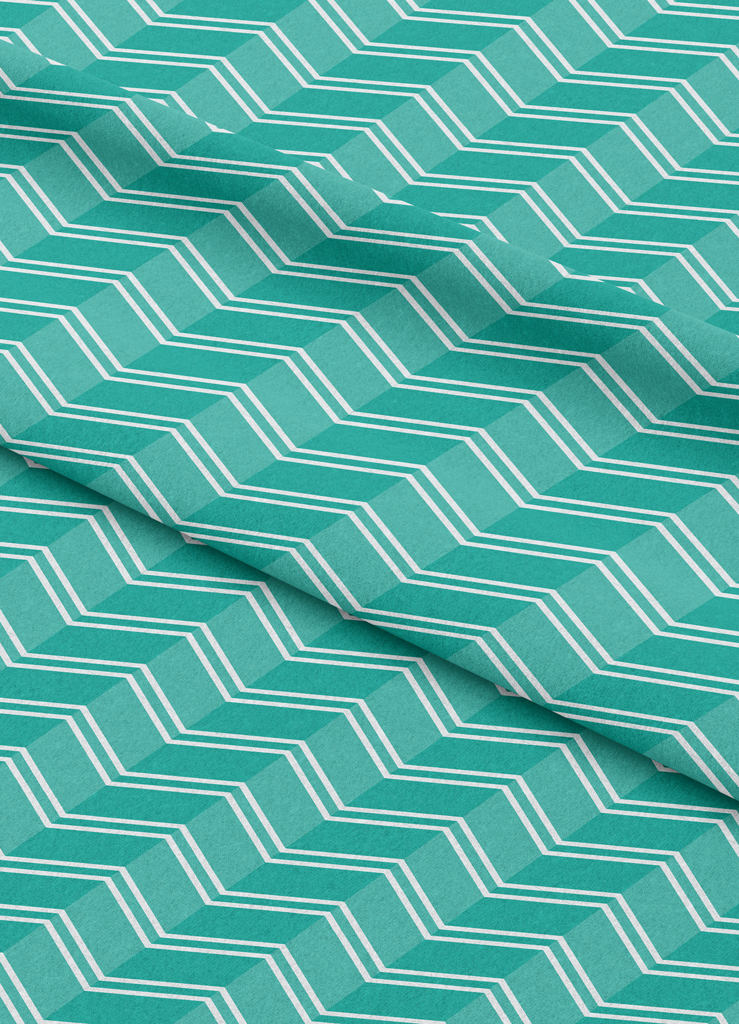Tecido Microfibra Estampa Digital Chevron Branco e Verde 1,55m de Largura