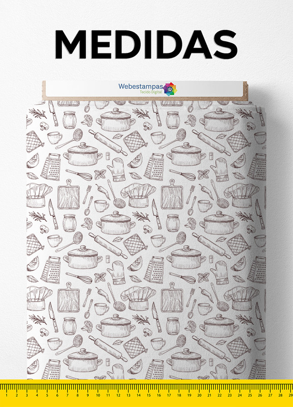 Tecido Microfibra Estampa Digital Cozinha Branco 1,55m de Largura