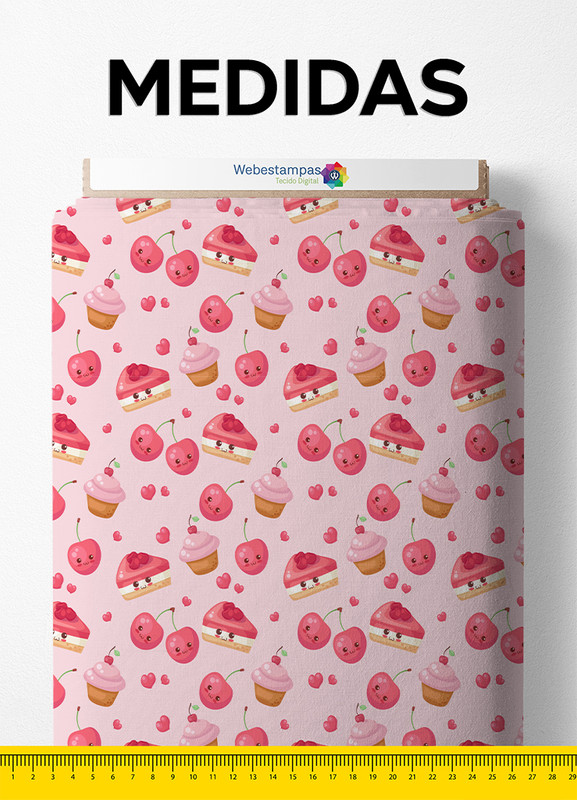 Tecido Microfibra Estampa Digital Cupcake Cereja 1,55m de Largura