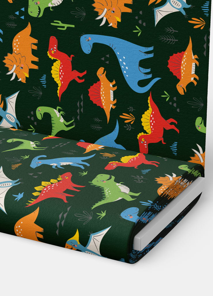 Tecido Microfibra Estampa Digital Dinossauros Coloridos Fundo Verde 1,55m de Largura