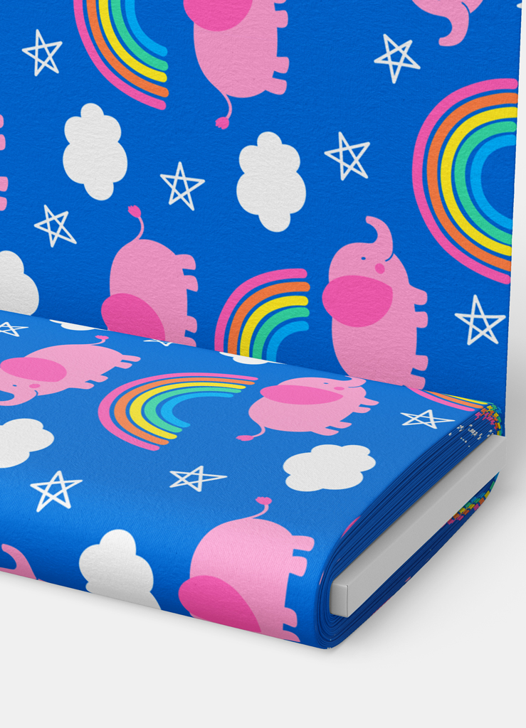 Tecido Microfibra Estampa Digital Elefante Arco-Íris Fundo Azul 1,55m de Largura