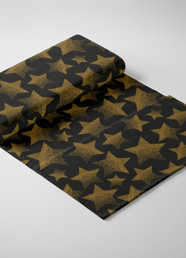 Tecido Microfibra Estampa Digital Estrela Dourada Fundo Preto 1,55m de Largura