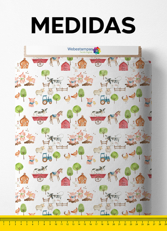 Tecido Microfibra Estampa Digital Fazenda dos Animais 1,55m de Largura