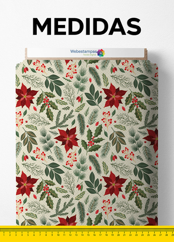 Tecido Microfibra Estampa Digital Flores Natalinas 1,55 de Largura