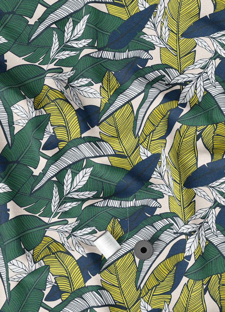 Tecido Microfibra Estampa Digital Folhas Amarelo Verde e Azul 1,55m de Largura