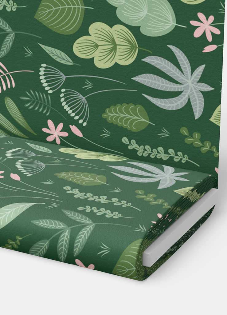 Tecido Microfibra Estampa Digital Folhas Fundo Verde Escuro 1,55m de Largura