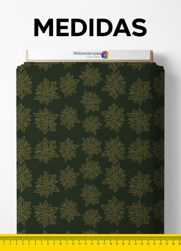 Tecido Microfibra Estampa Digital Folhas Natalinas Verde Escuro 1,55 de Largura