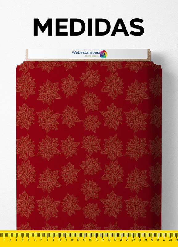 Tecido Microfibra Estampa Digital Folhas Natalinas Vermelho 1,55 de Largura