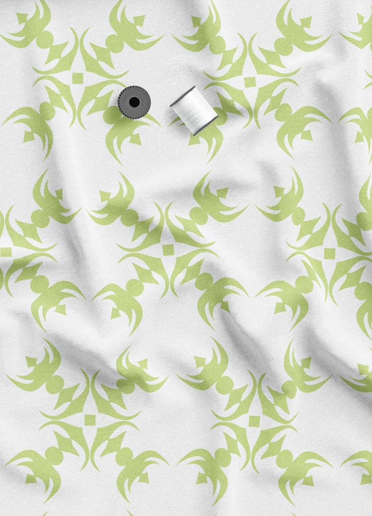 Tecido Microfibra Estampa Digital Formas Verdes Fundo Branco 1,55m de Largura