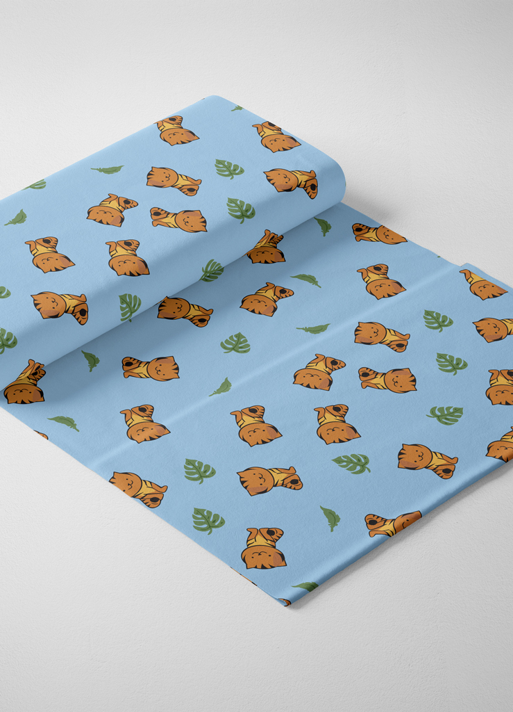 Tecido Microfibra Estampa Digital Gatinho Fundo Azul 1,55m de Largura