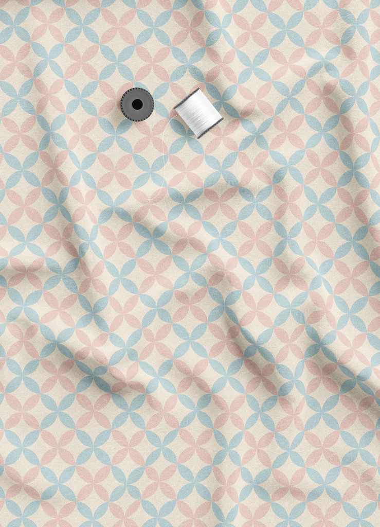 Tecido Microfibra Estampa Digital Geometrico Trevo Azul e Rose 1,55m de Largura