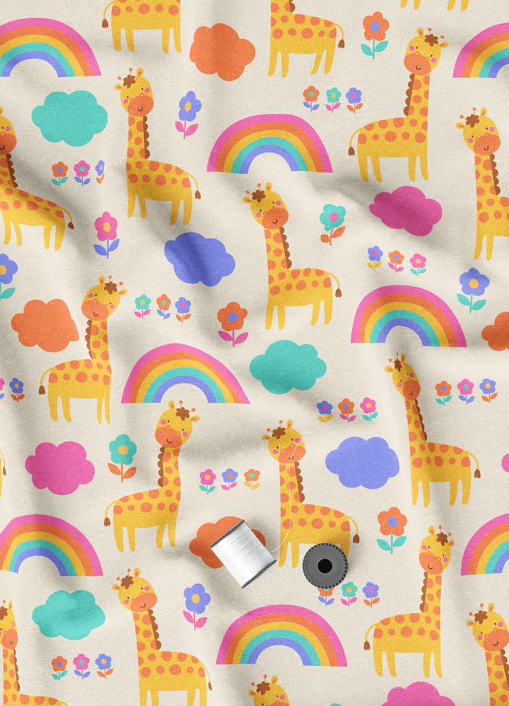Tecido Microfibra Estampa Digital Girafinha Arco-Íris 1,55m de Largura